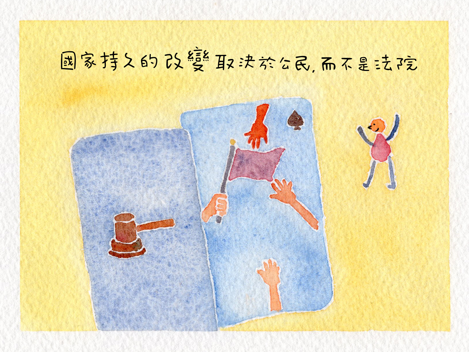 這段話精準地闡明了司法權與立法權、民意之間的關係。法院的裁判,即便具有劃時代的意義,卻也只是為社會變革提供了法律上的支持或阻礙。真正的變革動力,來自於公民的集體行動和意志。例如民權運動中的廢除種族隔離制度、同性婚姻的合法化,這些重大的社會進步,無一不是在公民不懈的抗爭與倡導下,才最終獲得法院的認可。換句話說,法院的判決往往是社會共識累積到一定程度後,所產生的法律體現,而非憑空創造出來的。