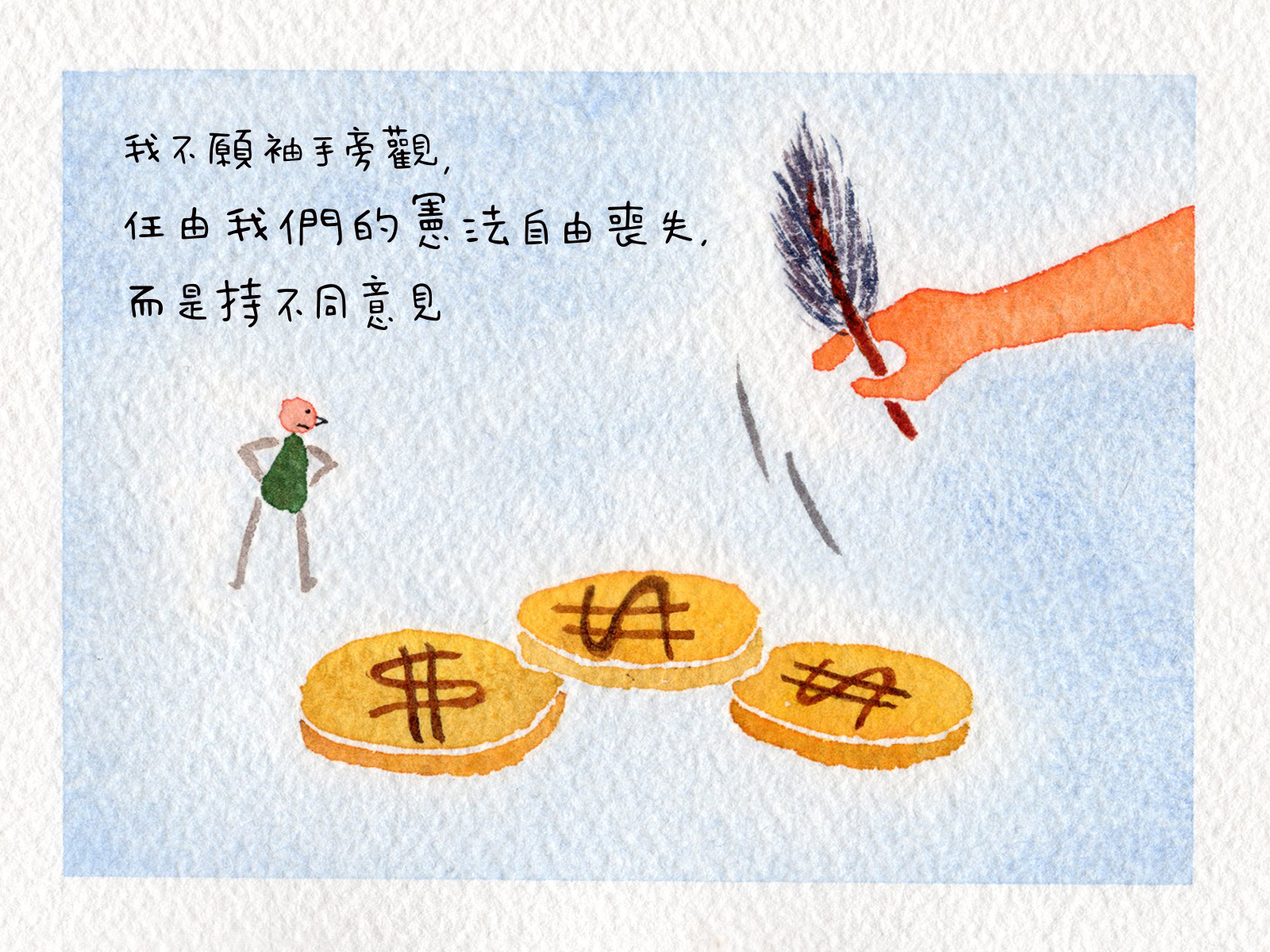 「我不願袖手旁觀,任由我們的憲法自由喪失,而是持不同意見。」