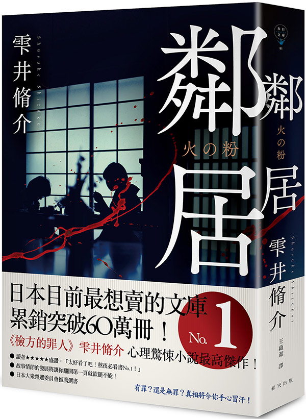 《鄰居》是《檢方的罪人》作者—雫井脩介的新作,內容描述身為審判長的梶間勳在退休前承辦一件被告被以殺人罪起訴的重案。雖然不論是檢察官的起訴理由、或是社會輿論的壓力都認為嫌疑犯武內是罪該萬死,但因為案情仍有無法解釋的疑點,最終梶間仍宣判武內無罪。梶間堅信他當時所做的判決並無瑕疵,但當武內成為梶間家的鄰居後卻開始發生怪事……
